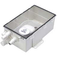 Système compact et silencieux comprenant un boîtier avec pompe Sahara. Déclenchement automatique en fonction du niveau d'eau. Matériaux résistants à la corrosion. Boîtier équipé :