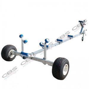 La remorque de Mise à l'eau CBS CM2 a un châssis monobloc et est équipé de 4 bobines avec des galets sur les côtés.